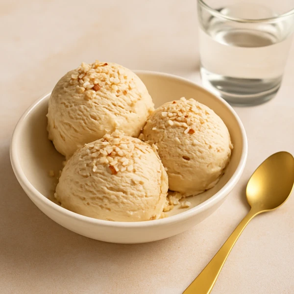 تعلم طريقة تحضير آيس كريم الطحينة الصحي في المنزل بدون سكر مضاف. وصفة نباتية، سهلة التحضير، وغنية با...