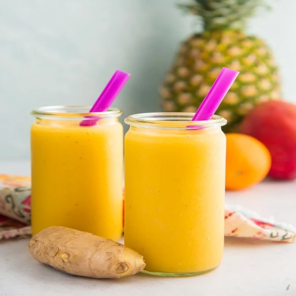 هذا السموذي الكريمي مليء بالبرتقال، الاناناس الاستوائي، والزنجبيل المنعش. هذه الوصفة سهلة وسريعة التحضير وصفة لذيذة وصحية في آن واحد!